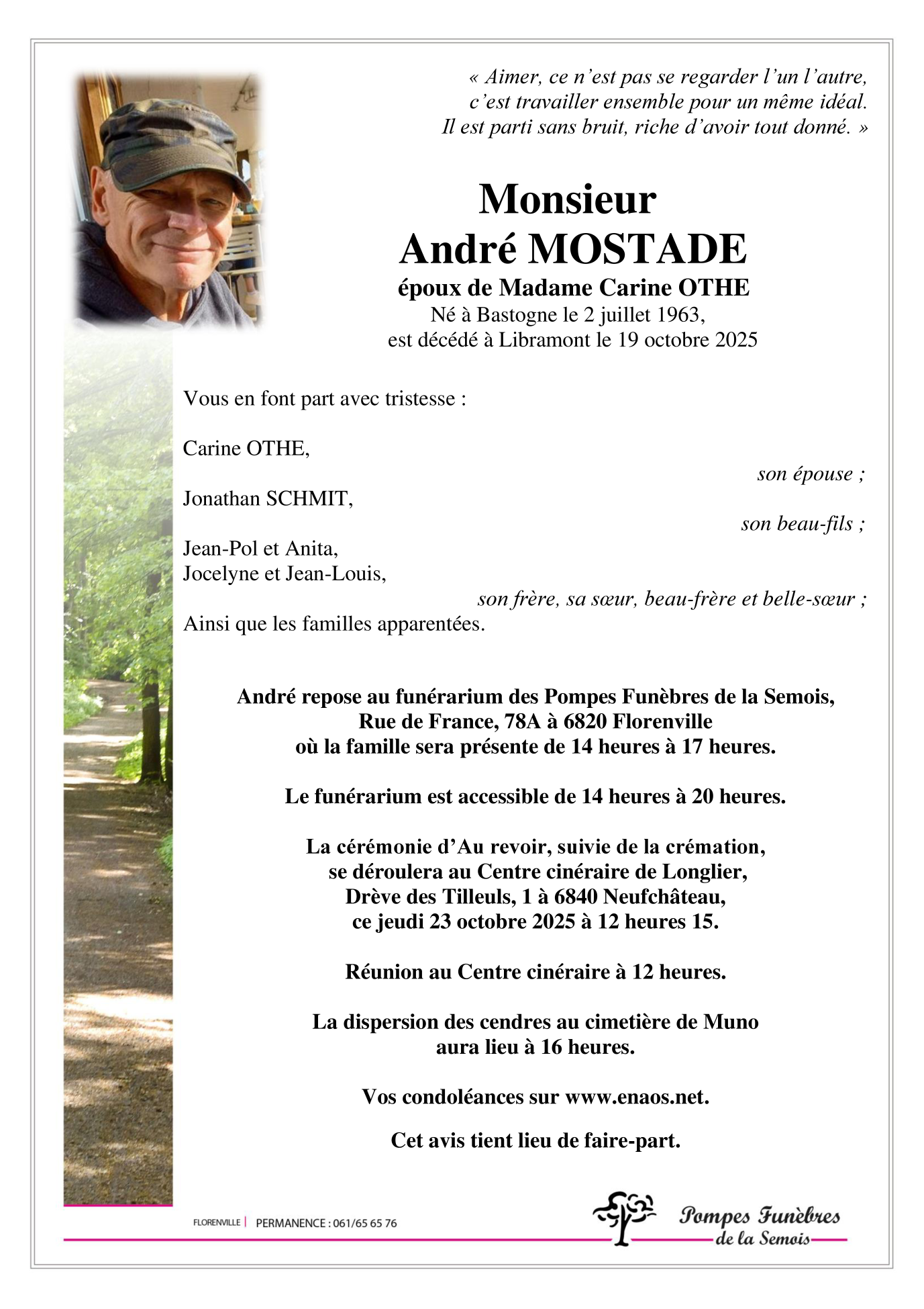 Décédé à Libramont-Chevigny (6800, Belgique) le dimanche 19 octobre 2025 à l'âge de 62 ans