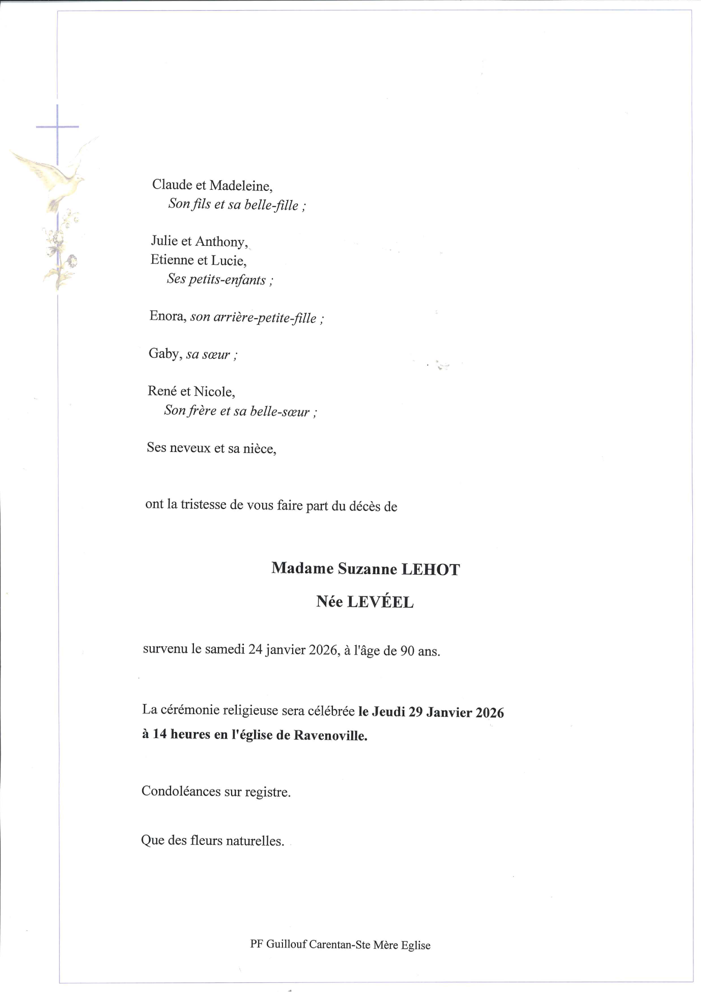 Died in Cherbourg-En-Cotentin (50100) on 24 January 2026 at the age of 90 years