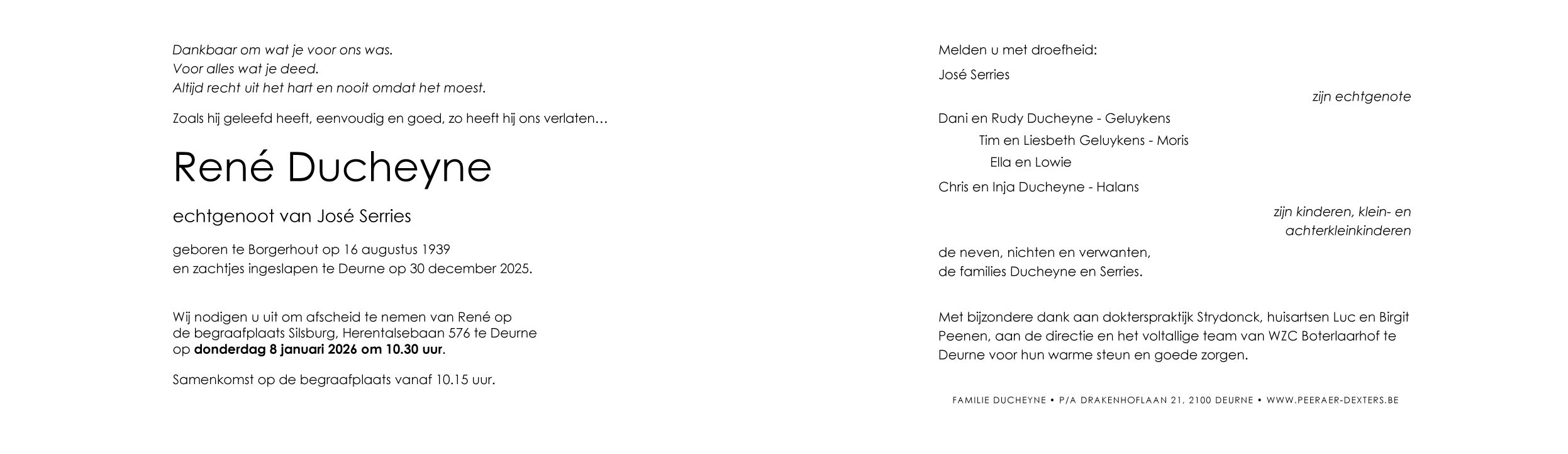 Décédé à Deurne (Antwerpen) (2100, Belgique) le mardi 30 décembre 2025 à l'âge de 86 ans