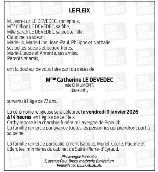 Madame Catherine LE DEVEDEC née CHAUMONT