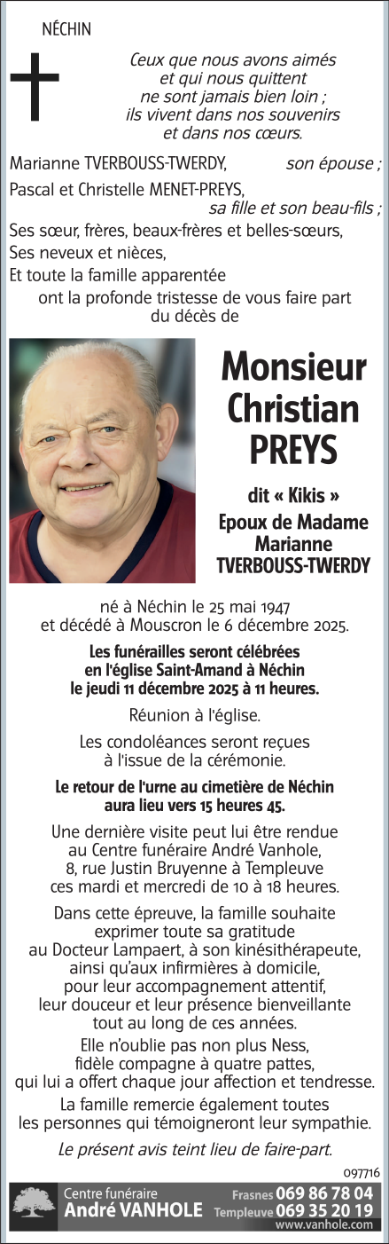 Fallecido en Mouscron (7700, Bélgica) el sábado, 6 de diciembre de 2025 a la edad de 78 años