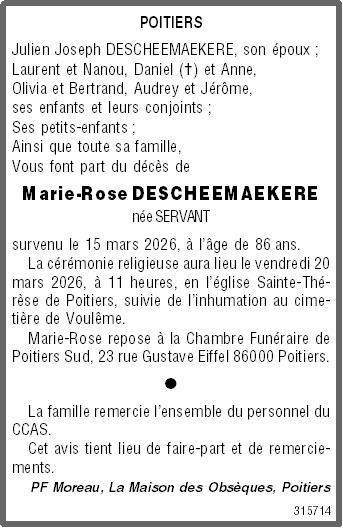 Died in Poitiers (86000) on 15 March 2026 at the age of 86 years