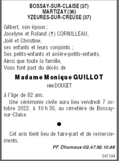 Died in Preuilly-sur-Claise (37290) on 04 October 2022 at the age of 82 years