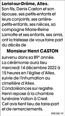 Died in Valence (26000) on 11 December 2022 at the age of 88 years