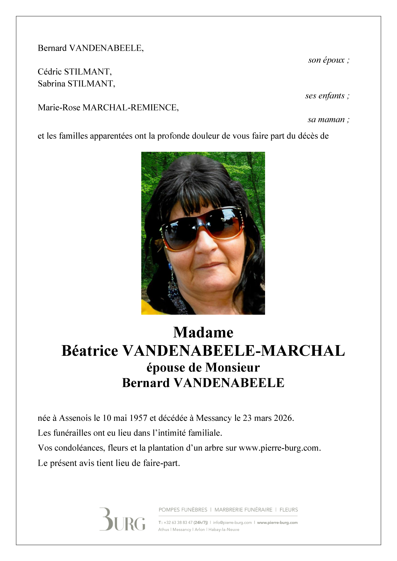 Epouse de Monsieur Bernard VANDENABEELE