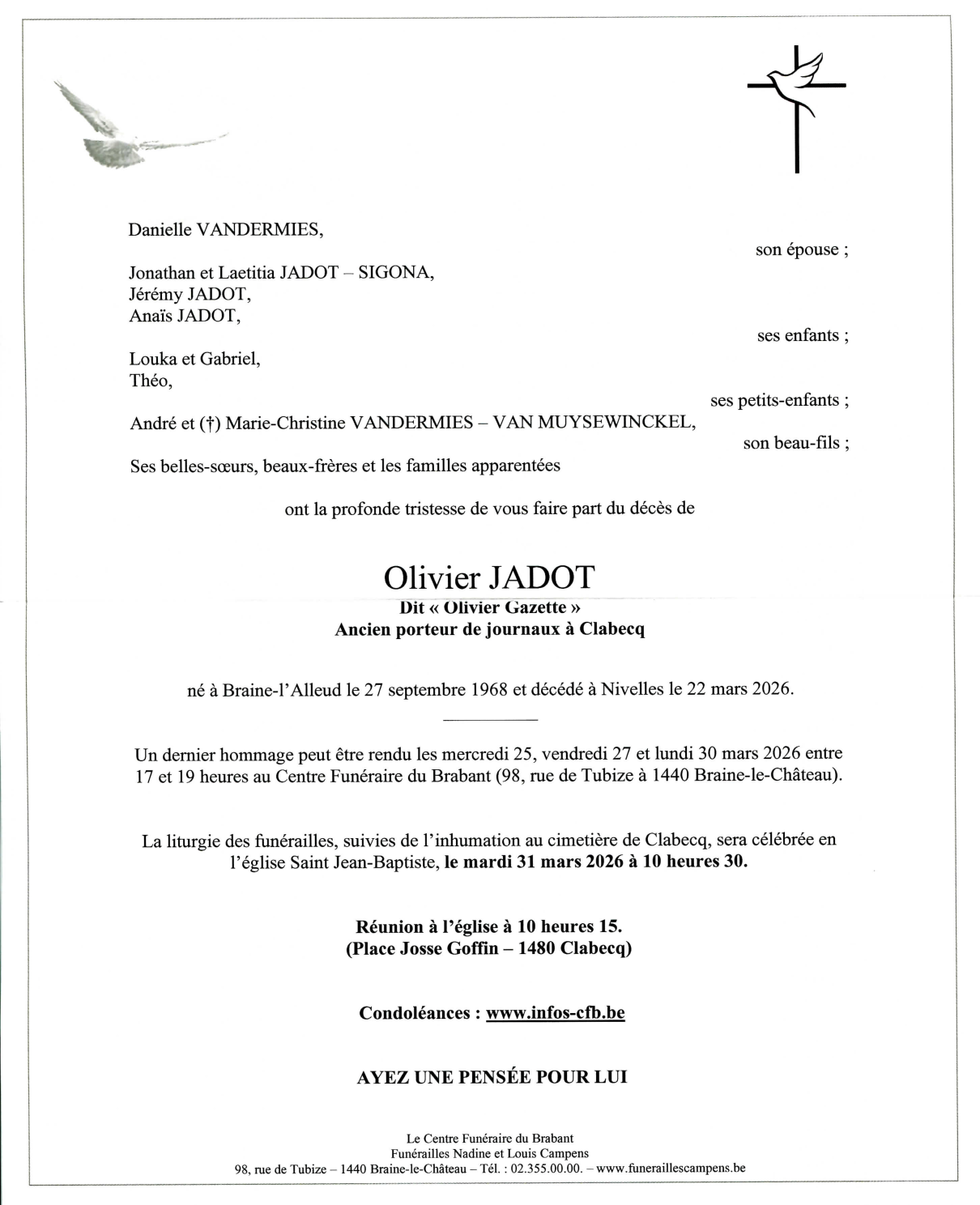 Décédé à Nivelles (1400, Belgique) le dimanche 22 mars 2026 à l'âge de 57 ans