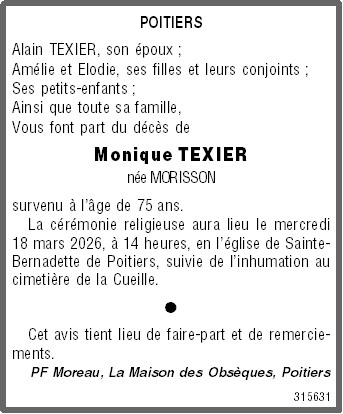 Madame Monique TEXIER née MORISSON