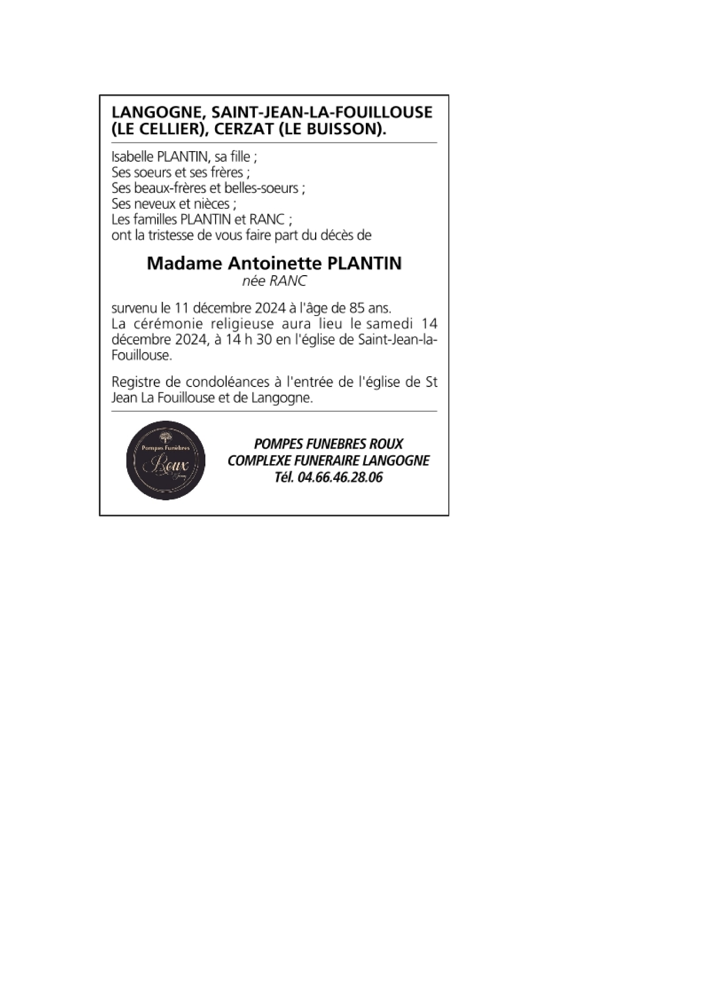 Annonce nécrologique