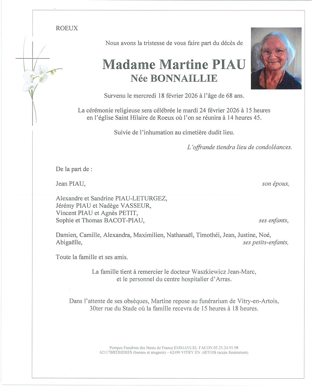 Madame Martine, Josette, Germaine PIAU née BONNAILLIE