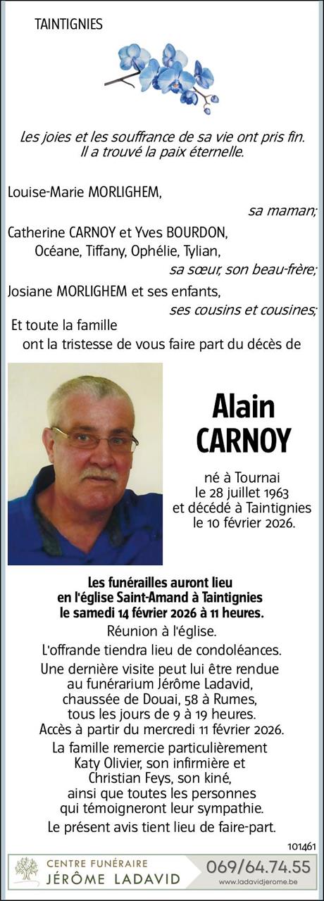 Overleden te Taintignies (7618, België) op dinsdag 10 februari 2026 op 62-jarige leeftijd