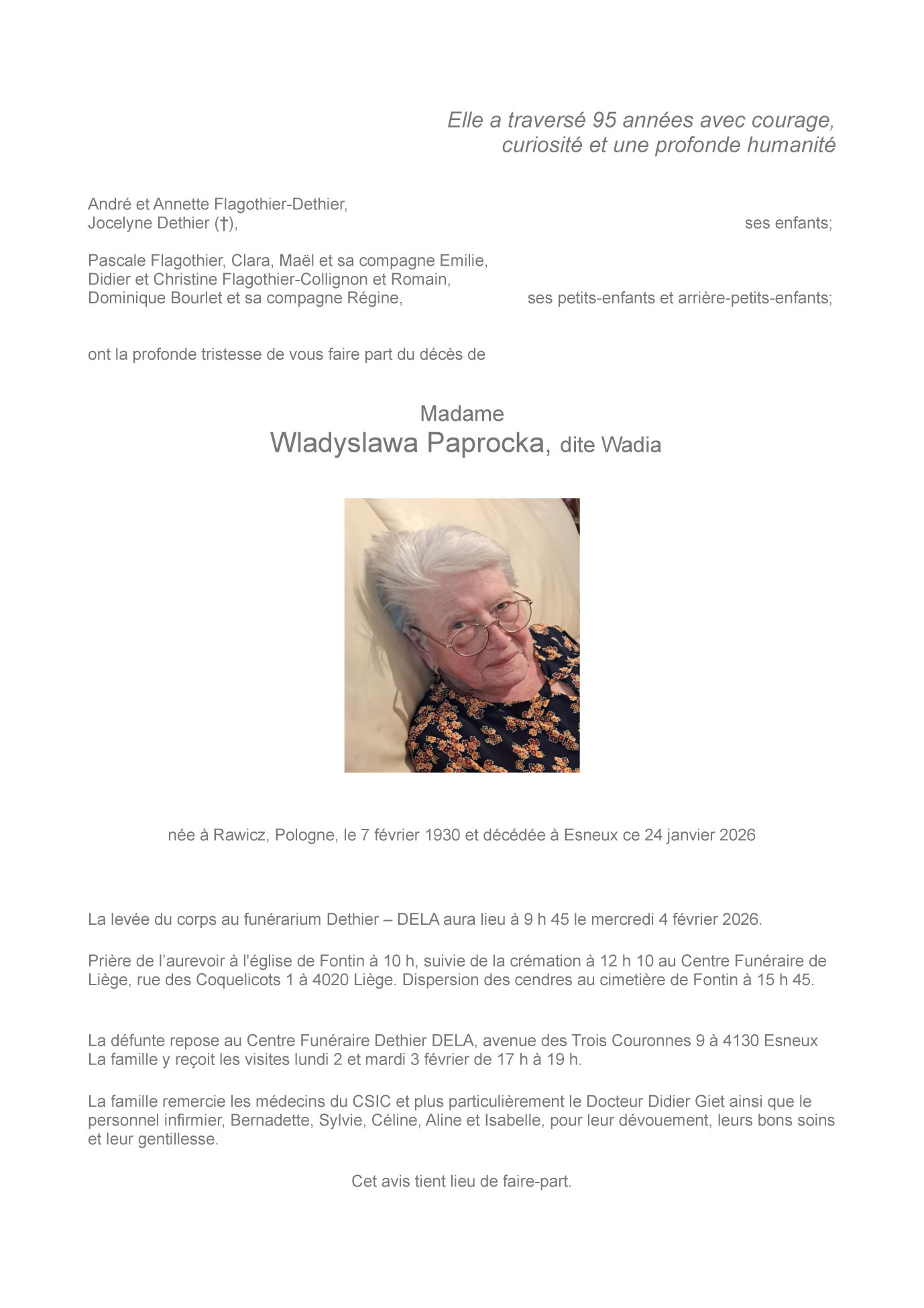 Fallecida en LA HAZE (Bélgica) el sábado, 24 de enero de 2026 a la edad de 95 años