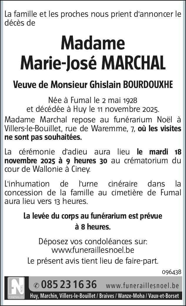 Décédée à Huy (4500, Belgique) le mardi 11 novembre 2025 à l'âge de 97 ans