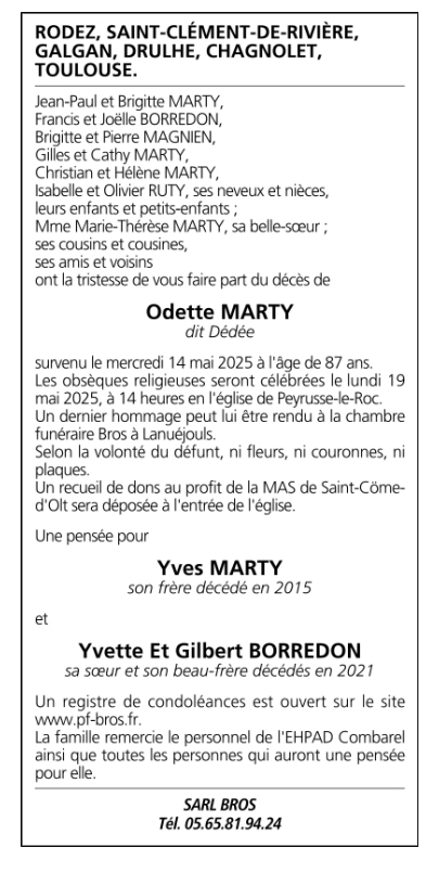 Overleden te Rodez (12000) op woensdag 14 mei 2025 op 87-jarige leeftijd