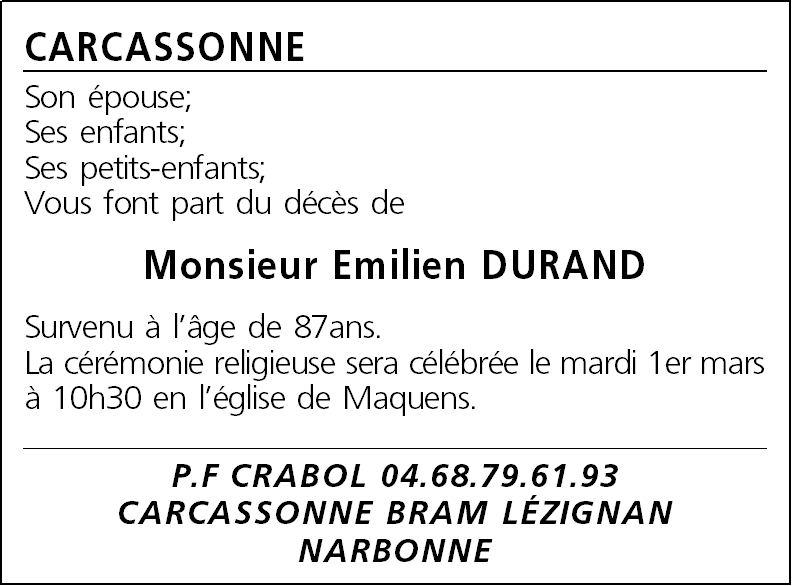 Monsieur Emilien DURAND