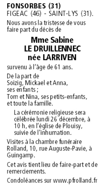 Madame Sabine LE DRUILLENNEC née LARRIVEN