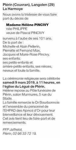 Madame Hélène PINCIVY née PHILIPPE