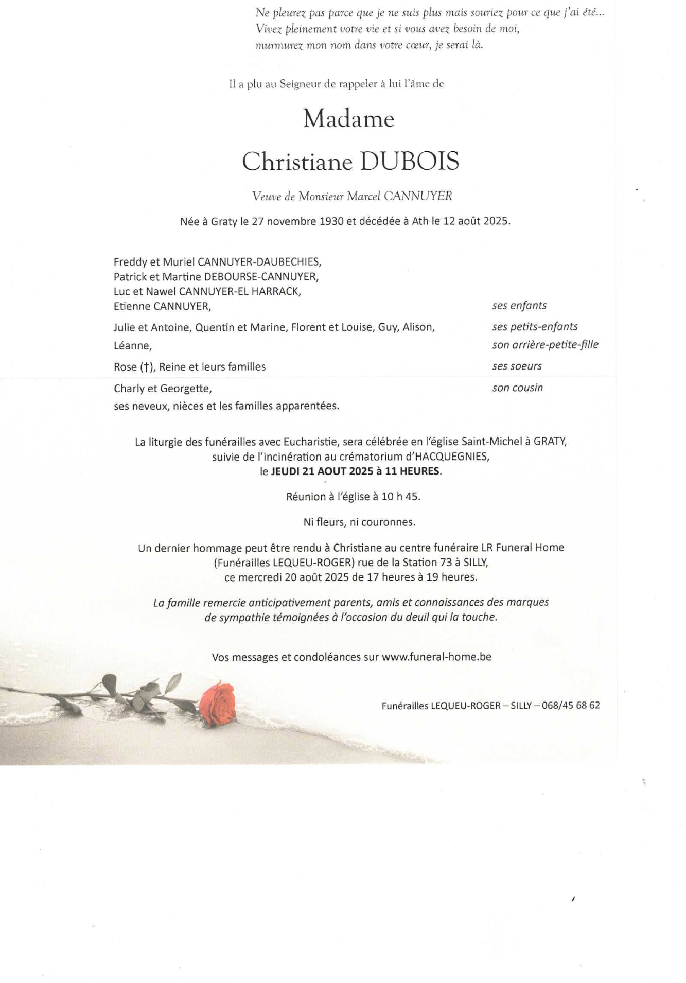 Veuve de Monsieur Marcel CANNUYER