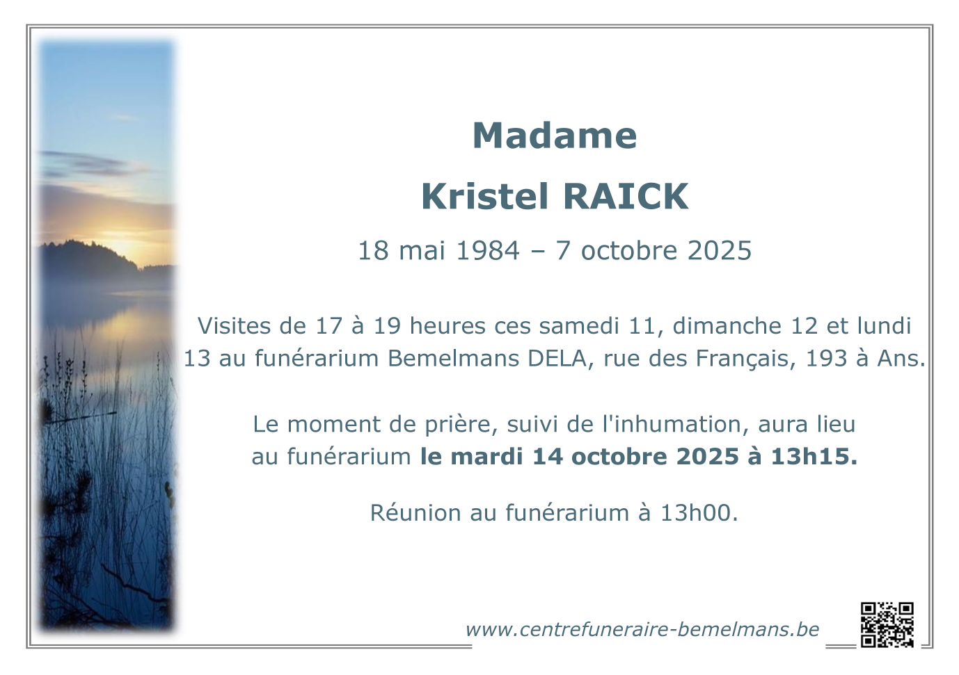 Décédée à Liège (4000, Belgique) le mardi 7 octobre 2025 à l'âge de 41 ans