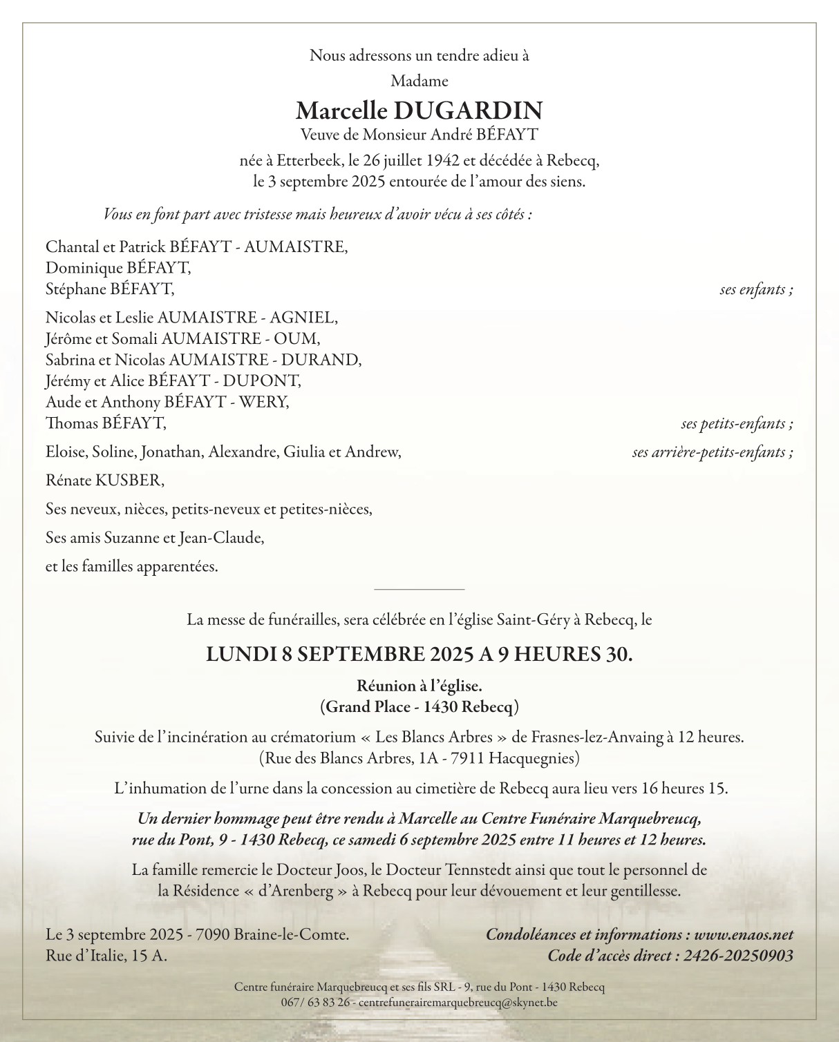 Weduwe van Monsieur André BÉFAYT