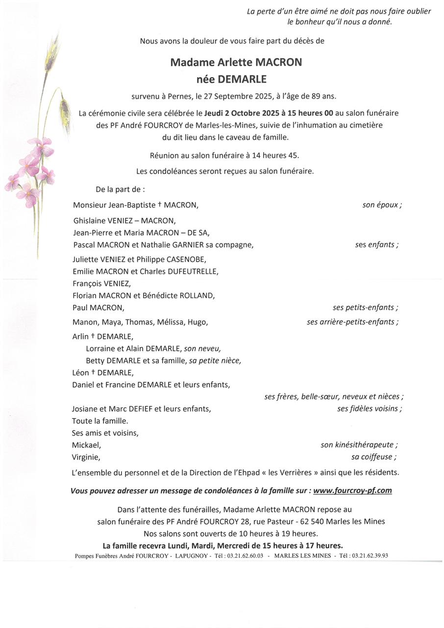 Madame Arlette MACRON née DEMARLE
