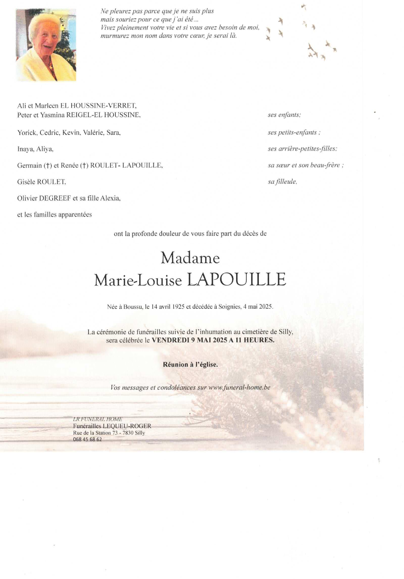 Overleden te Soignies (7060, België) op zondag 4 mei 2025 op 100-jarige leeftijd
