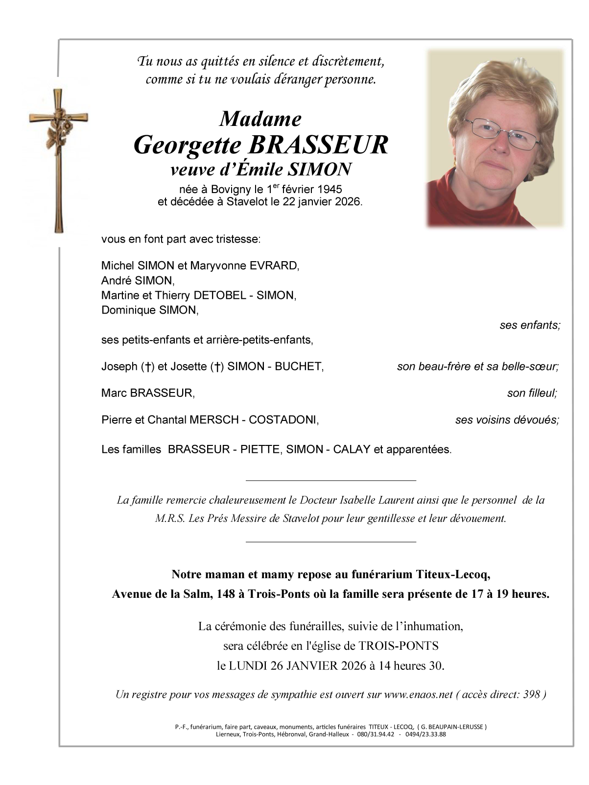 Died in Stavelot (4970, Belgium) on 22 January 2026 at the age of 80 years