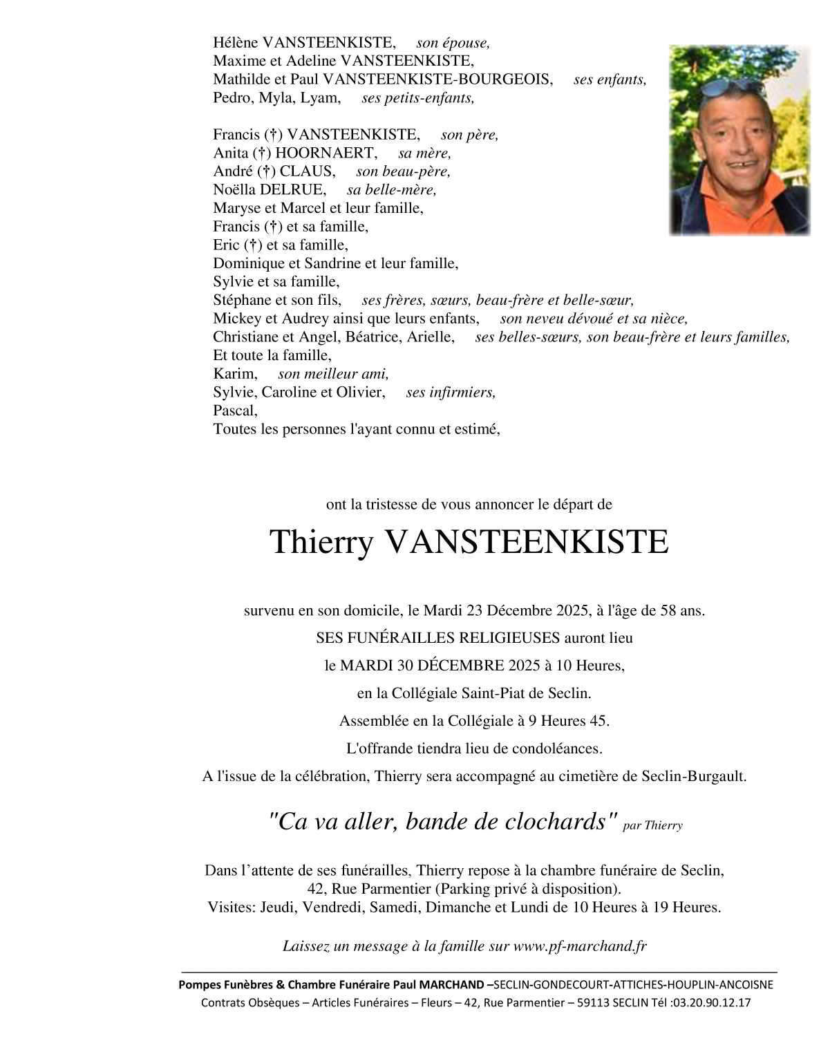 Décédé à Seclin (59113) le mardi 23 décembre 2025 à l'âge de 58 ans