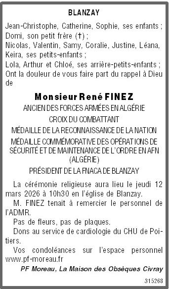 Died in Ruffec (16700) on 05 March 2026 at the age of 89 years