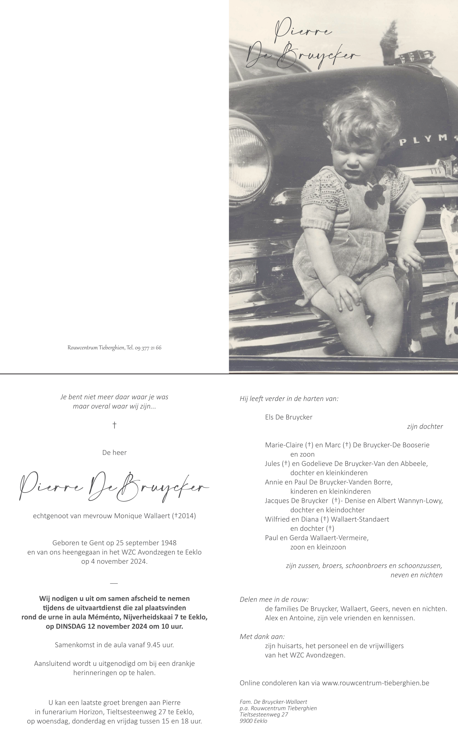 Overleden te Eeklo (9900, België) op maandag 4 november 2024 op 76-jarige leeftijd