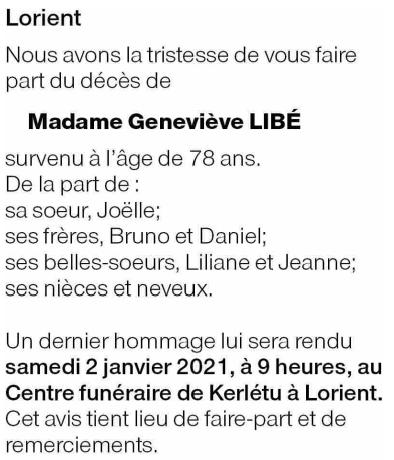 Died in Lorient (56100) on 28 December 2020 at the age of 78 years