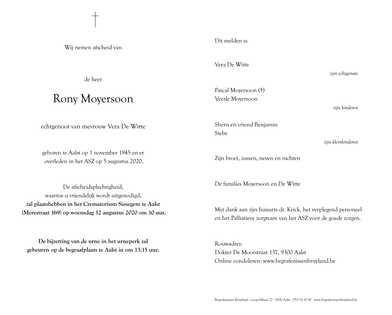 Décédé à Aalst (9300, Belgique) le mercredi 5 août 2020 à l'âge de 74 ans