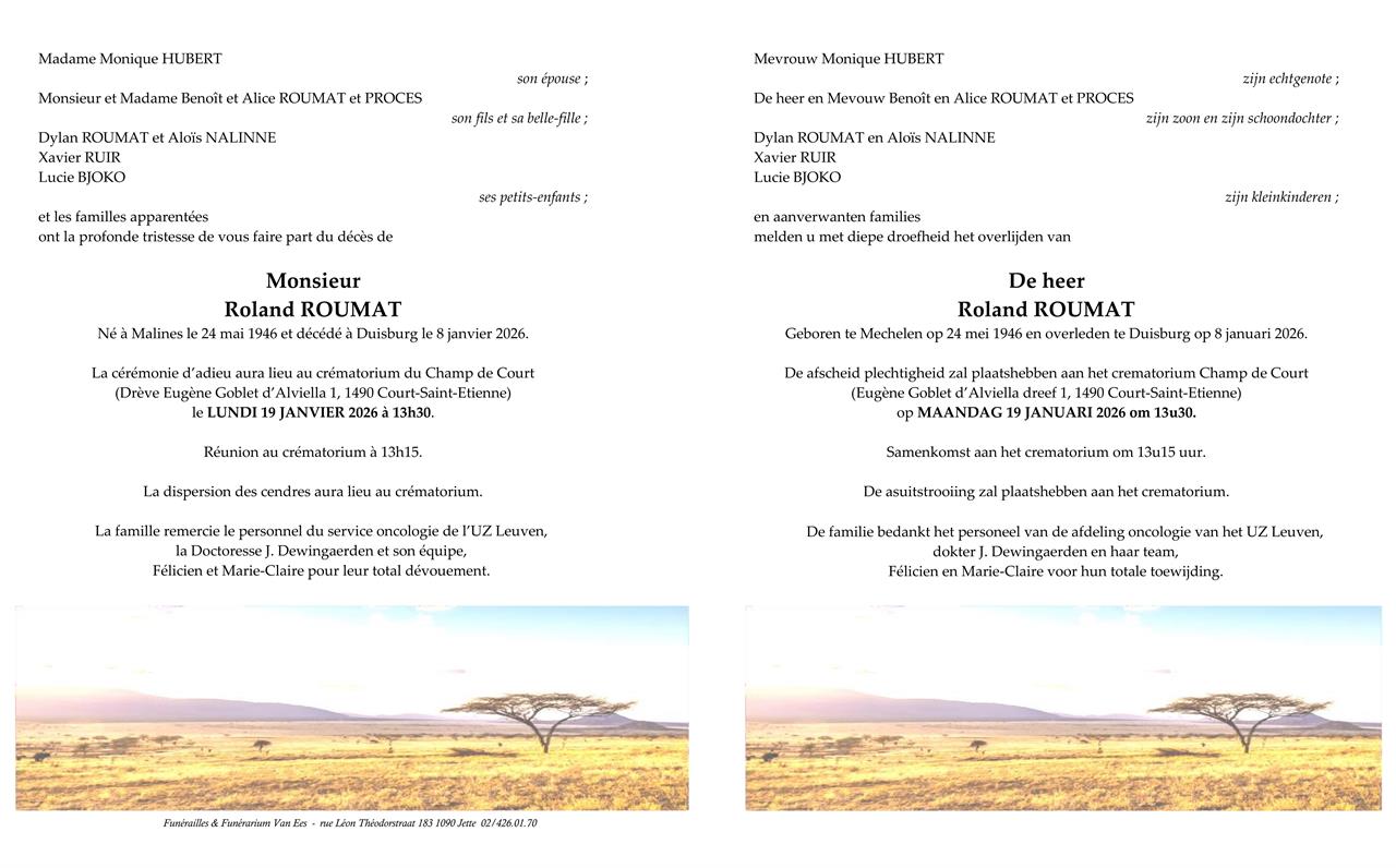 Died in Duisburg (3080, Belgium) on 08 January 2026 at the age of 79 years
