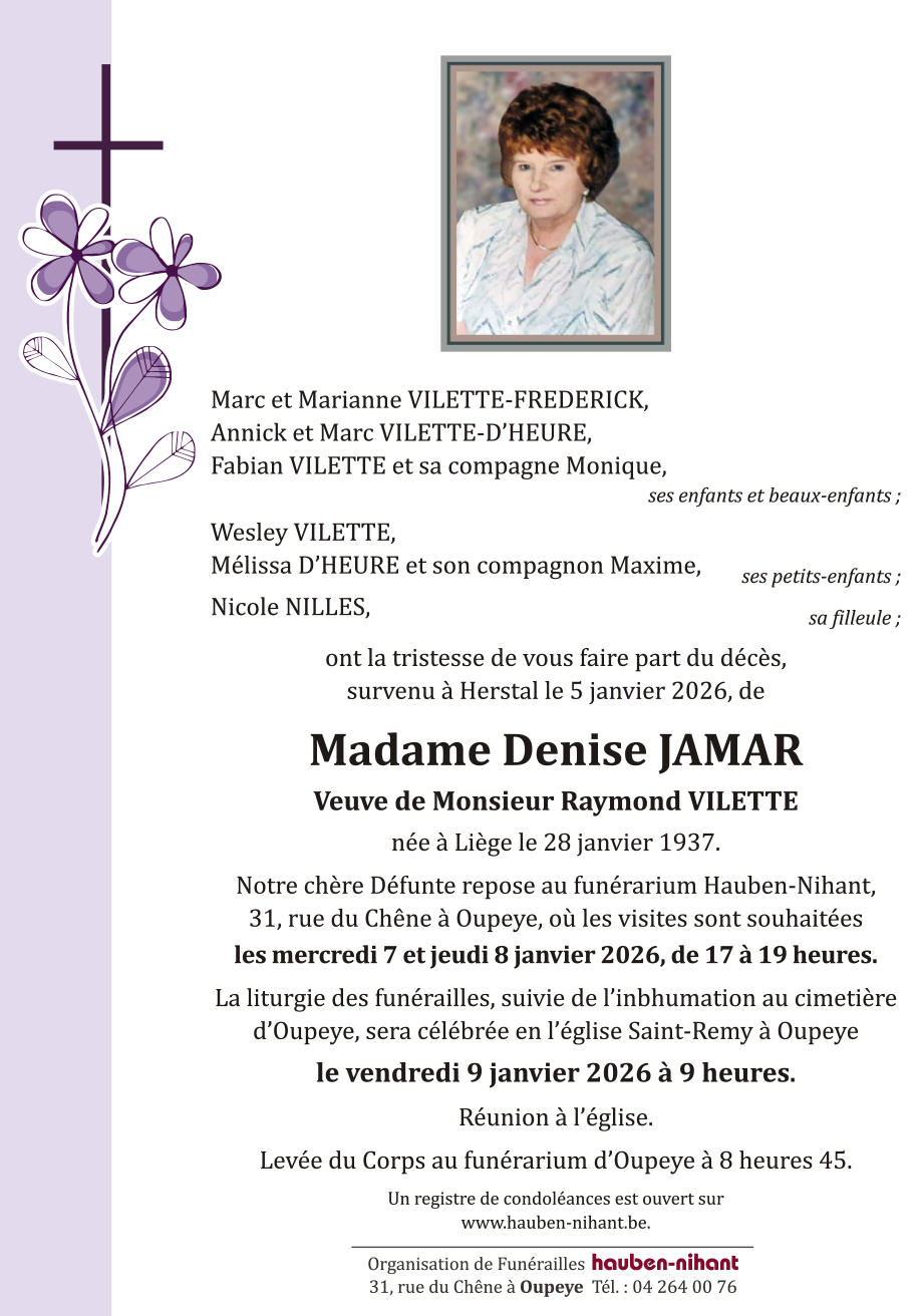 Died in Herstal (4040, Belgium) on 05 January 2026 at the age of 88 years