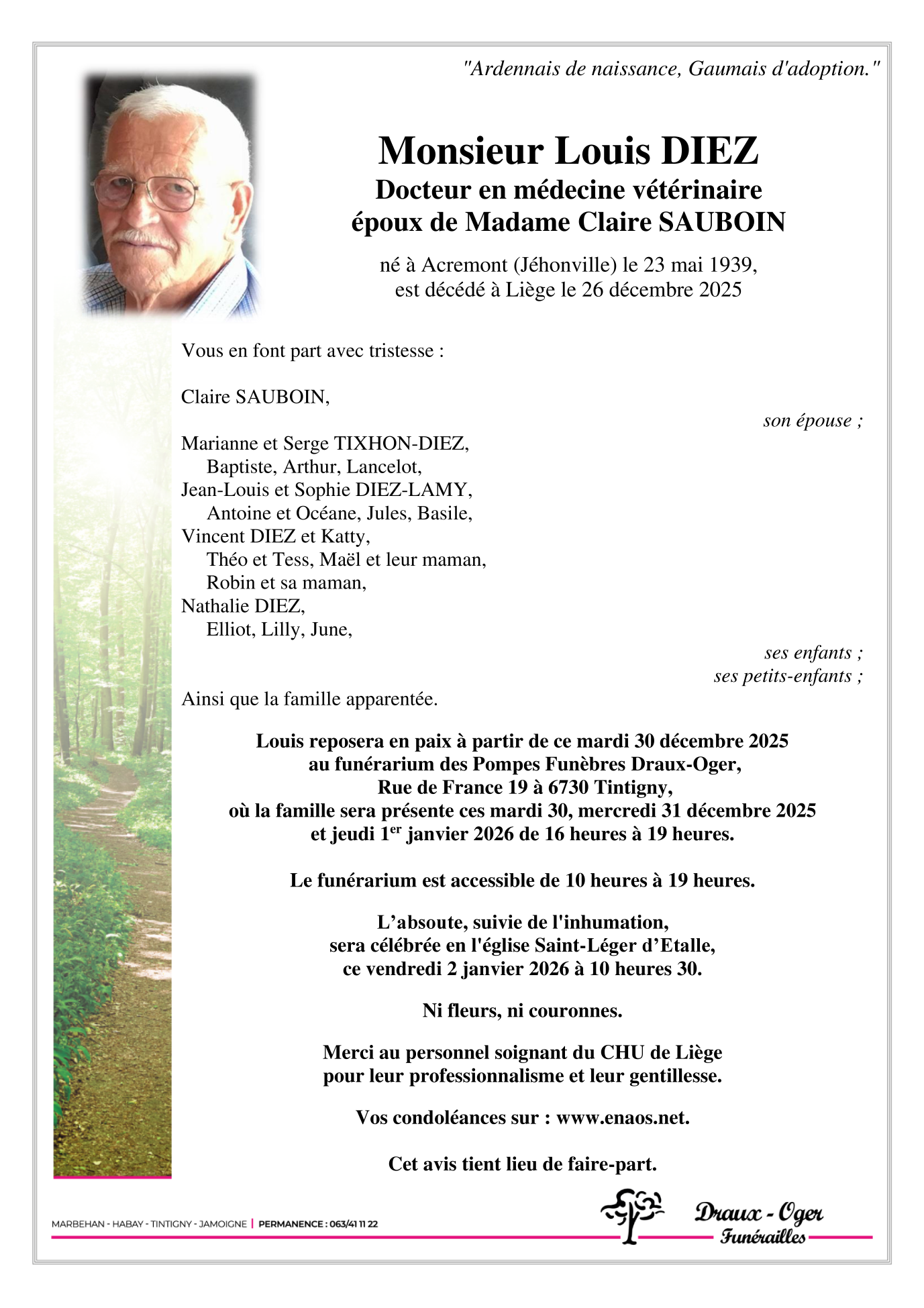 Décédé à Liège (4000, Belgique) le vendredi 26 décembre 2025 à l'âge de 86 ans