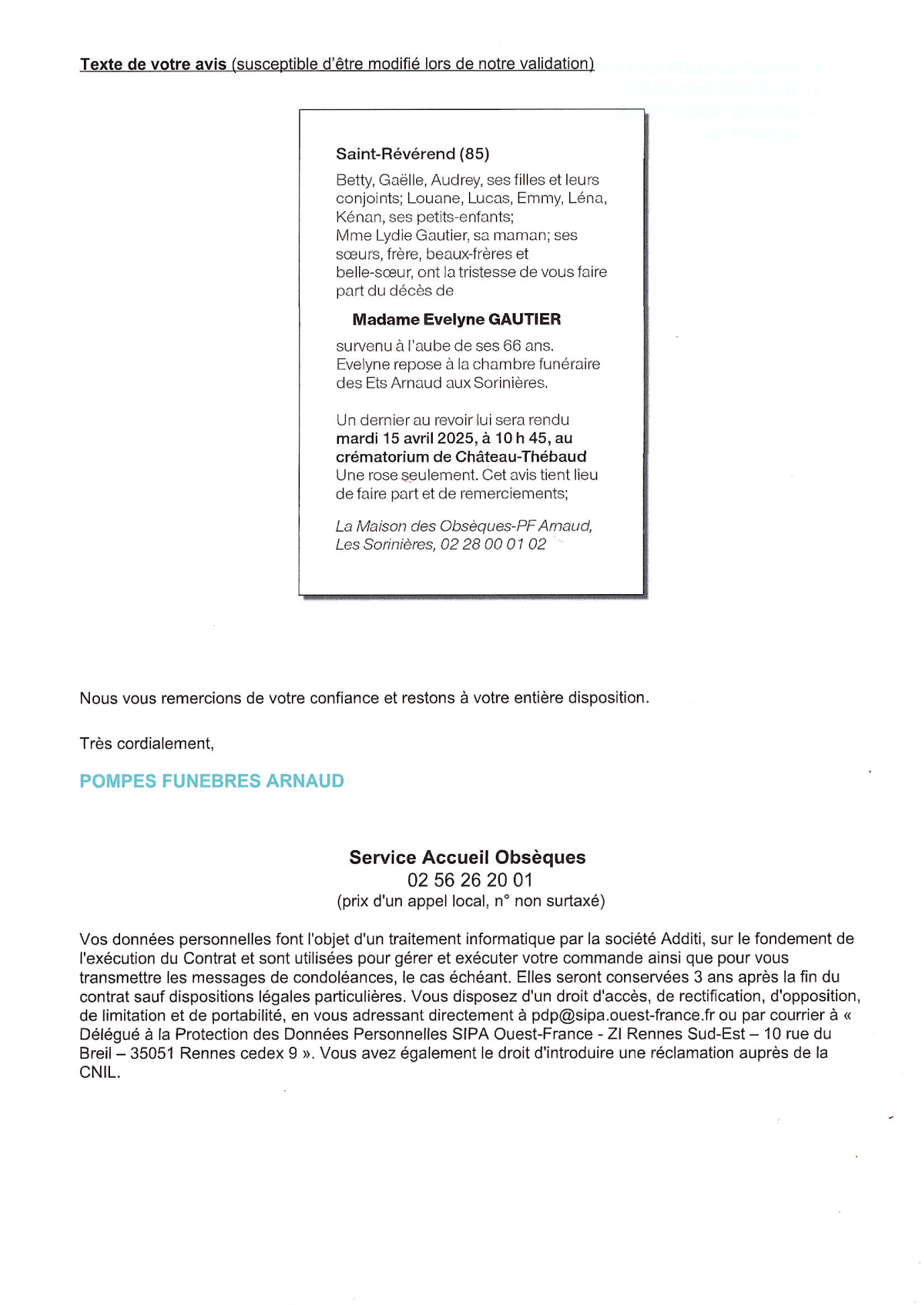 Annonce nécrologique