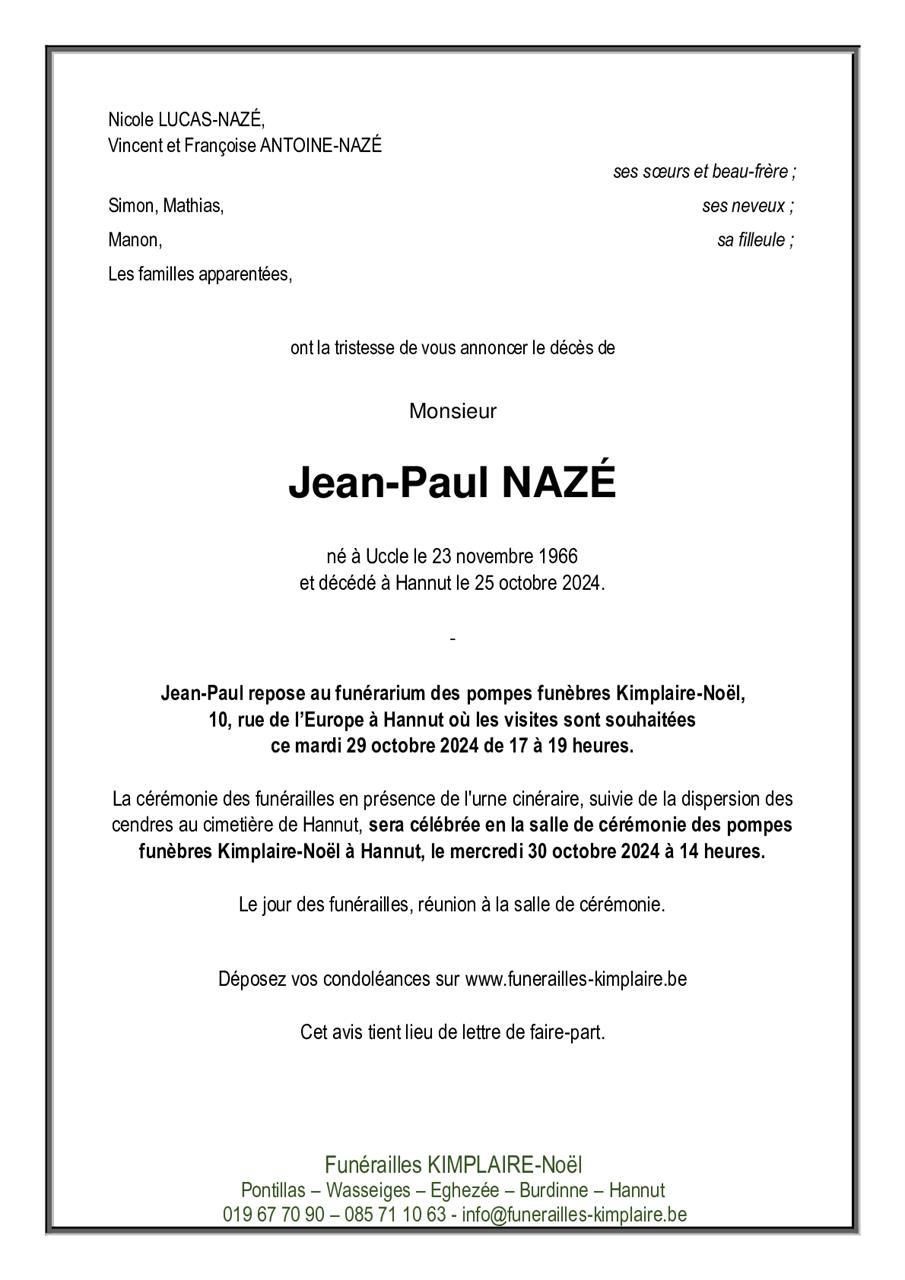 Fallecido en Hannut (4280, Bélgica) el jueves, 24 de octubre de 2024 a la edad de 57 años
