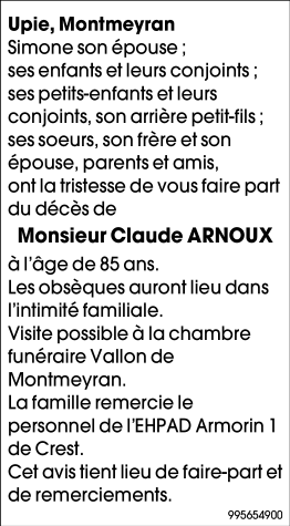 Décédé à Crest (26400) le lundi 21 février 2022 à l'âge de 85 ans