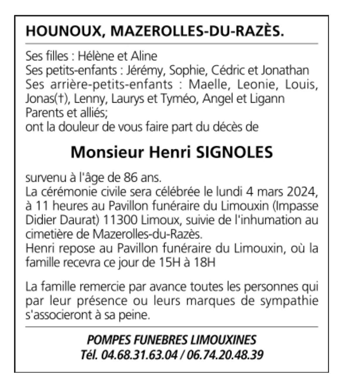 Monsieur Henri SIGNOLES