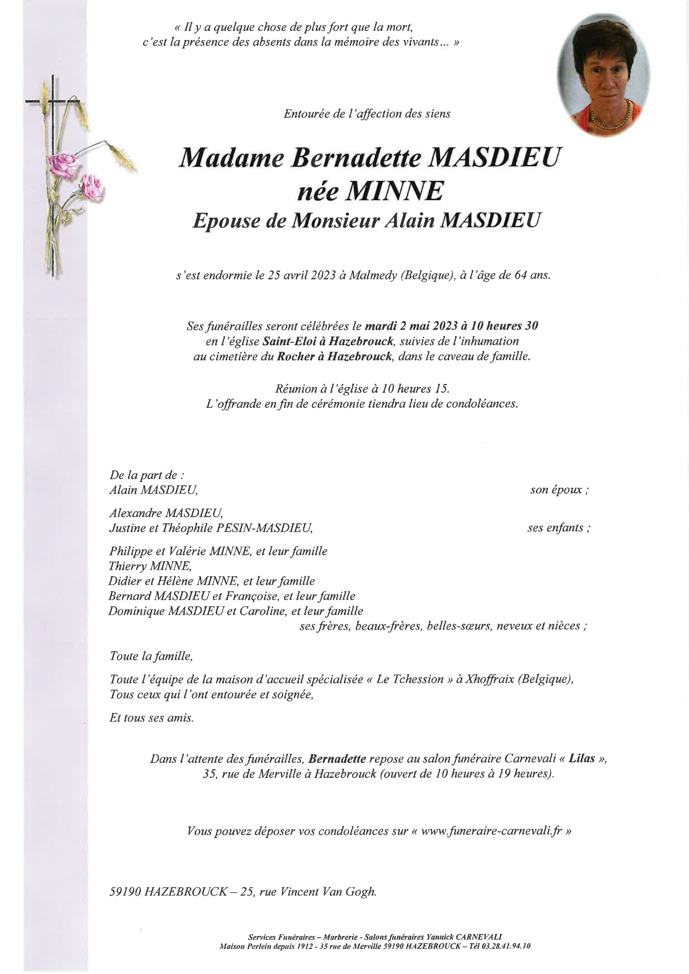 Décédée à Malmedy (4960, Belgique) le mardi 25 avril 2023 à l'âge de 64 ans