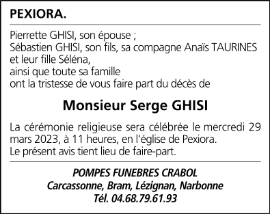 Décédé à Carcassonne (11000) le samedi 25 mars 2023 à l'âge de 66 ans