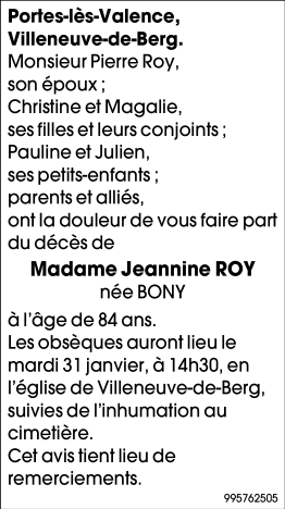 Madame Jeannine ROY née BONY