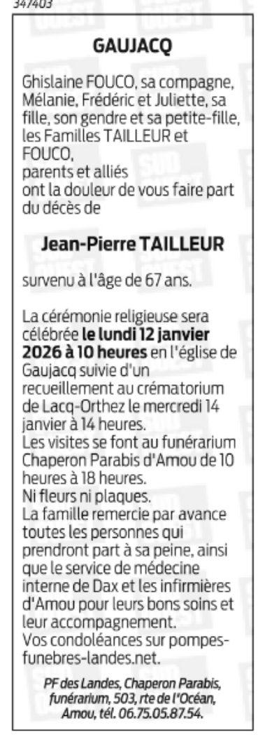 Décédé à Dax (40100) le mardi 6 janvier 2026 à l'âge de 67 ans