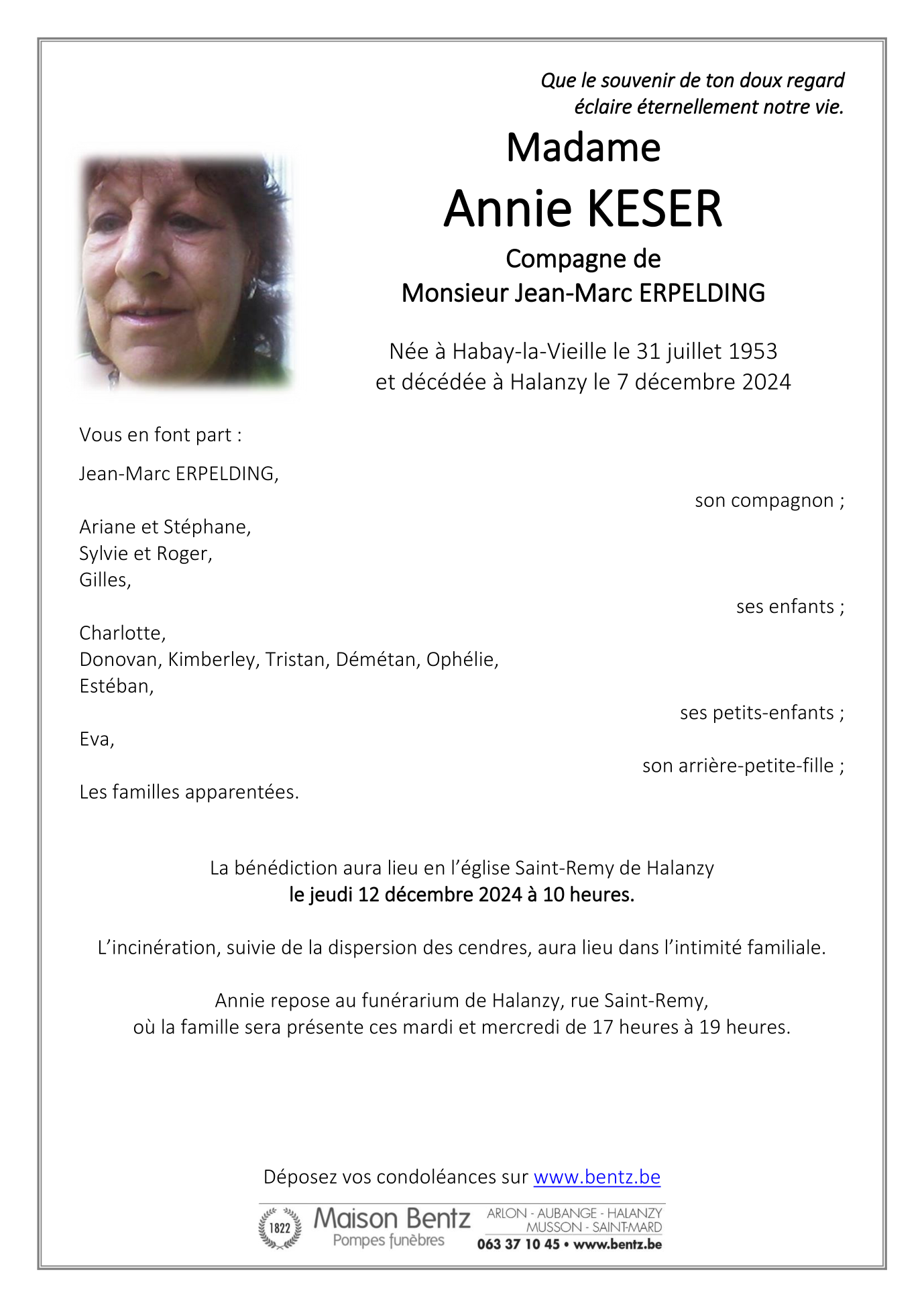 Overleden te Halanzy (6792, België) op zaterdag 7 december 2024 op 71-jarige leeftijd