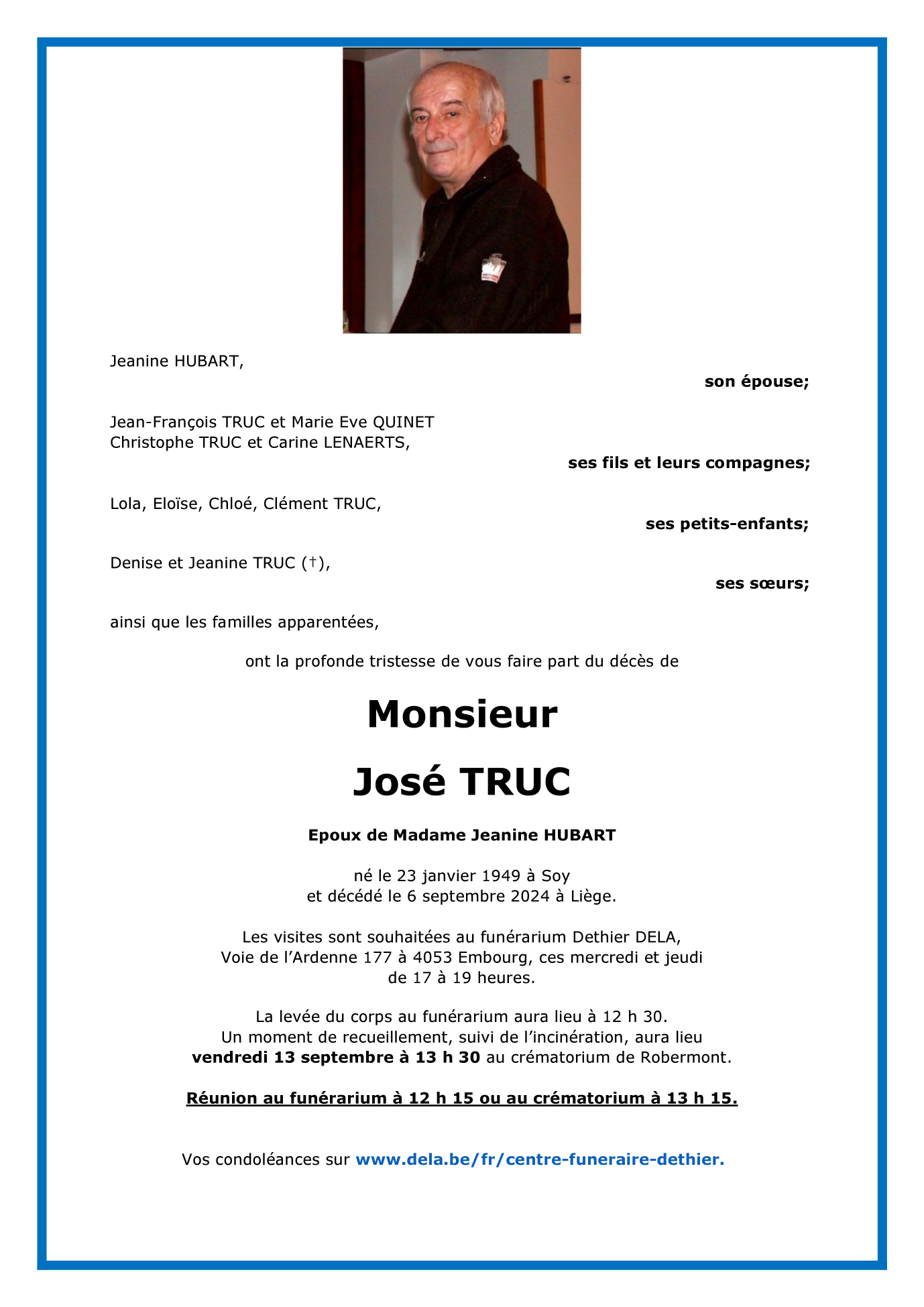 Décédé à Liège (4000, Belgique) le vendredi 6 septembre 2024 à l'âge de 75 ans