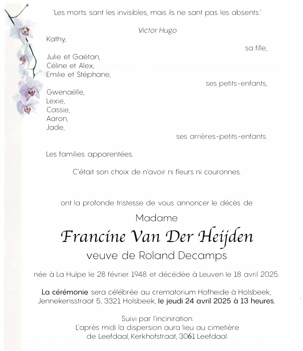 Overleden te Leuven (3000, België) op vrijdag 18 april 2025 op 77-jarige leeftijd