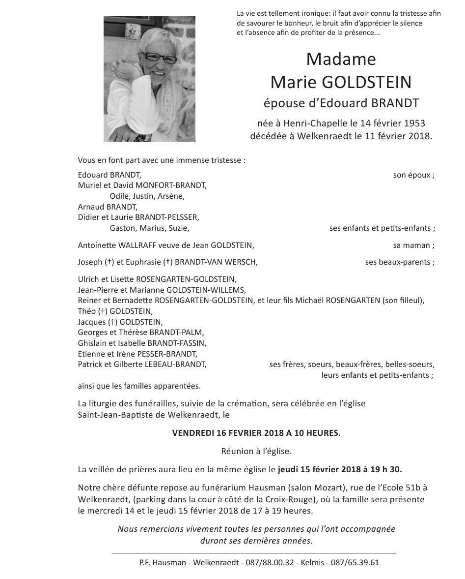 Overleden te Welkenraedt (4840, België) op zondag 11 februari 2018 op 64-jarige leeftijd