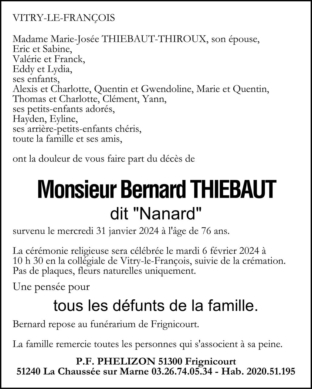 Died in Saint-Dizier (52100) on 31 January 2024 at the age of 76 years