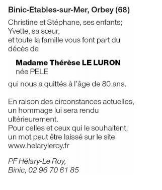 Madame Thérèse LE LURON née PELE
