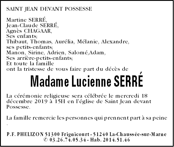Née à Saint-Jean-devant-Possesse (51330) le mercredi 8 octobre 1930