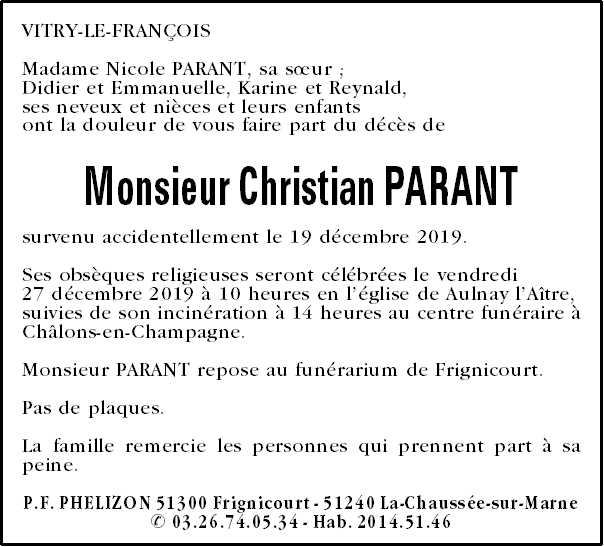 Décédé à Saint-Dizier (52100) le jeudi 19 décembre 2019 à l'âge de 68 ans